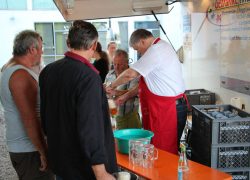 Natürlich gibt’s auch einen alkoholfreien Punsch, weißen Glühwein und für den Hunger warme Leberkäs-Semmel.